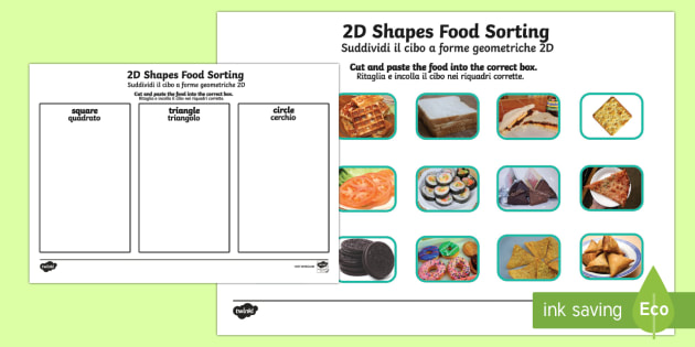 Food 2d Shape Sorting English Italian Teacher Made