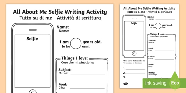 All About Me Selfie Writing Worksheet Worksheet English