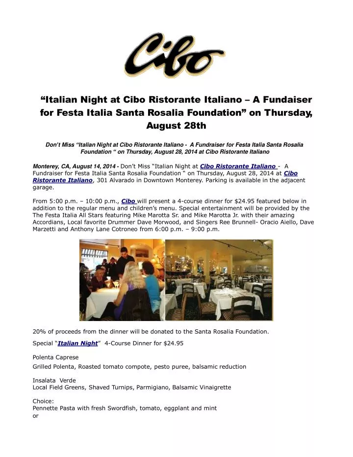Ppt Italian Night At Cibo Ristorante Italiano A